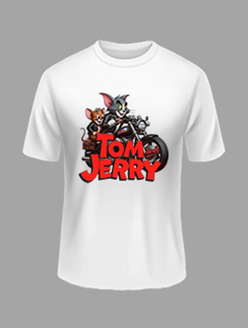 High Quality -Tom & Jerry Printed Polyester Tshirt – White Color | Margramstore-M size